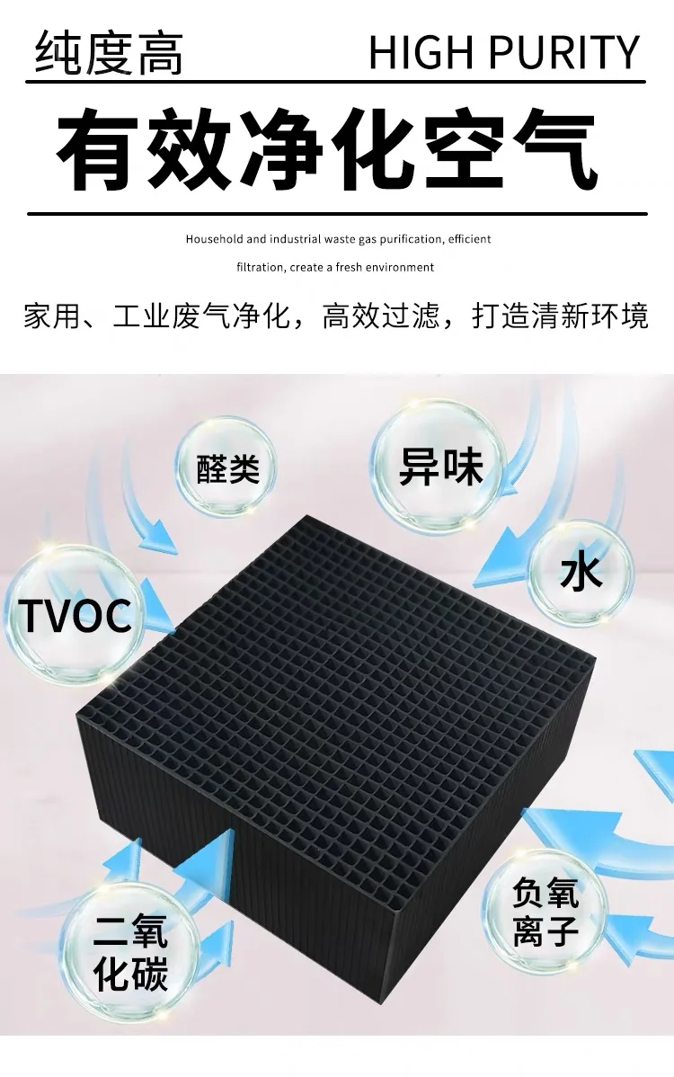 在应用场景方面,蜂窝活性炭广泛应用于废气处理领域。随着工业化的快速发展,废气排放问题日益严重,对环境和人体健康构成了严重威胁。蜂窝活性炭凭借其高效的吸附能力,能够有效地去除废气中的有害物质,如挥发性有机化合物(VOCs)、硫化物、氮氧化物等,从而达到净化废气的目的。此外,蜂窝活性炭还可用于空气净化、水处理等领域,展现出其多样化的应用价值。